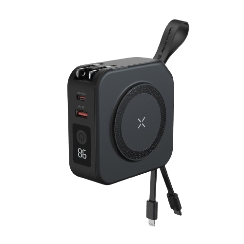 Deze 5-in-1 universele oplader is de ultieme draagbare oplader, uitgerust met verwisselbare adapter. Met een krachtige 10.000mAh batterij biedt het langdurig gebruik voor je apparaten. Met een supersnelle 15W geïntegreerde magnetische oplader voor de meest recente IOS-telefoons en de nieuwste generatie Android-telefoons. Inclusief AU, EU, VK, VS en Aziatische adapters.