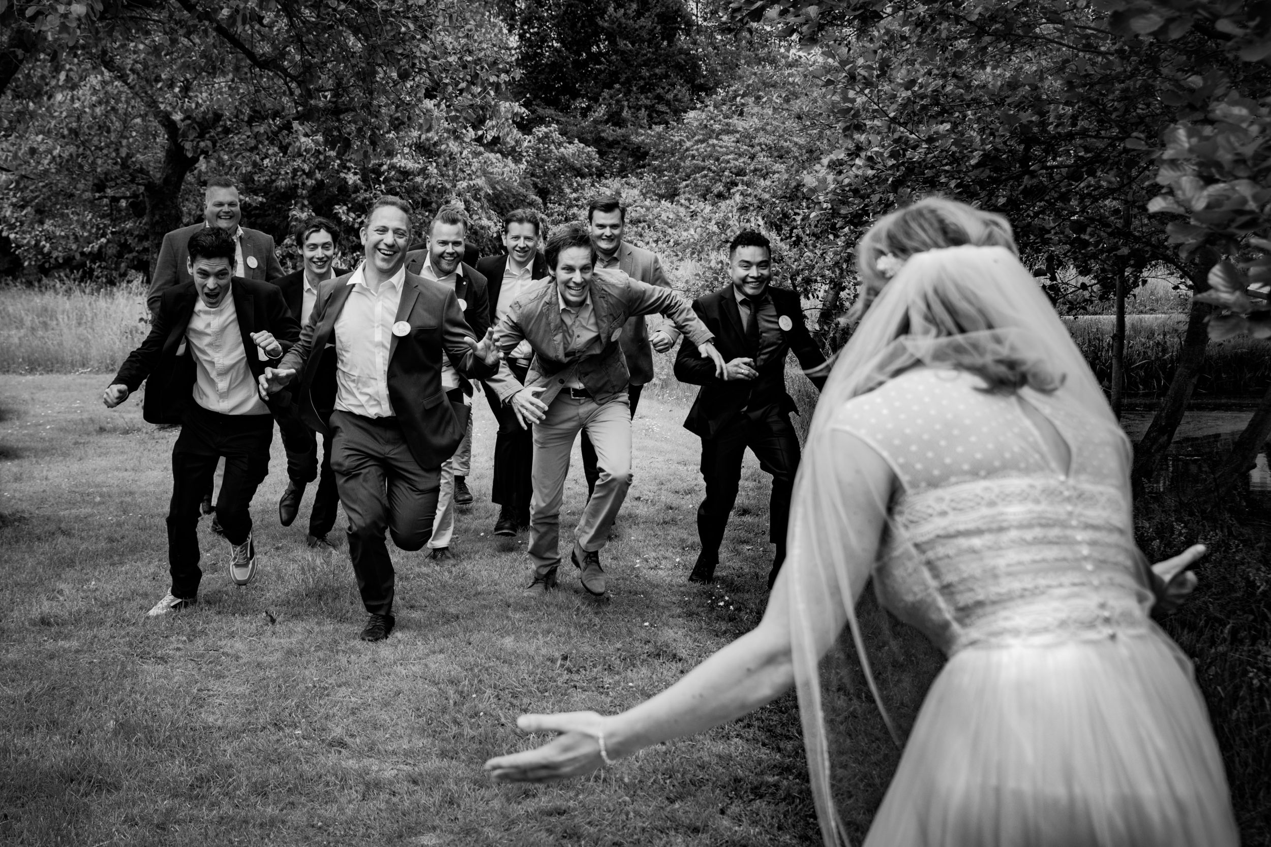 Hij noemt zichzelf geen bruidsfotograaf, maar een fotograaf die een bruiloft vastlegt. “De dag vastleggen zoals het écht ging ”, legt Arjan uit. “Op mijn foto’s is een lach een echte lach. En oma die per ongeluk over de tafelpoot struikelt, die staat er ook op. Ik regisseer niks, waardoor mijn foto’s spontaan en echt zijn. Daar moet je van houden, maar het feit dat ik dit al tien jaar doe, dat zegt denk ik genoeg.”