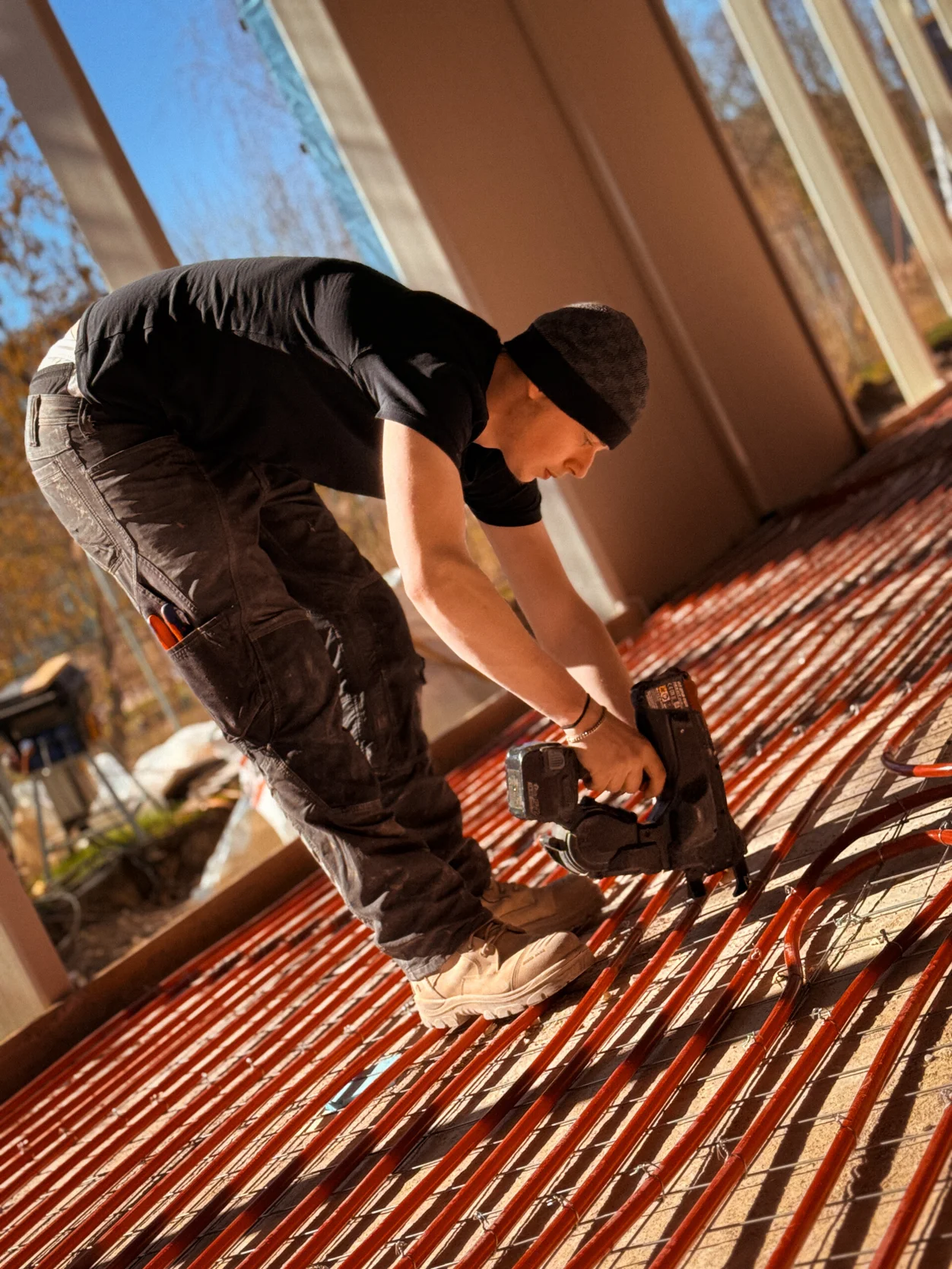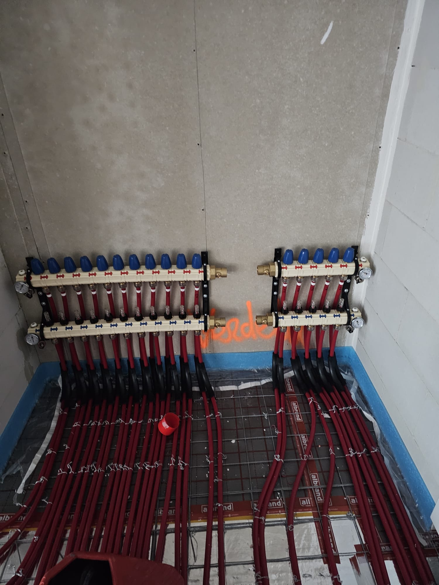 Vloerverwarming aanbrengen in nieuwbouw vormt de hoofdmoot van de werkzaamheden. Op dit moment is het team van DNS – zes man sterk – bezig met de aanleg in nieuwe hoogbouw in Heerhugowaard. ,,Een grote klus, want we hebben het over 1400 appartementen die worden opgeleverd.” Van woningen in Lisse en Zoetermeer tot een watertoren in Limburg en zelfs een tempel: overal wordt vloerverwarming ingezet. ,,En het kán ook overal,” zegt Dennis.